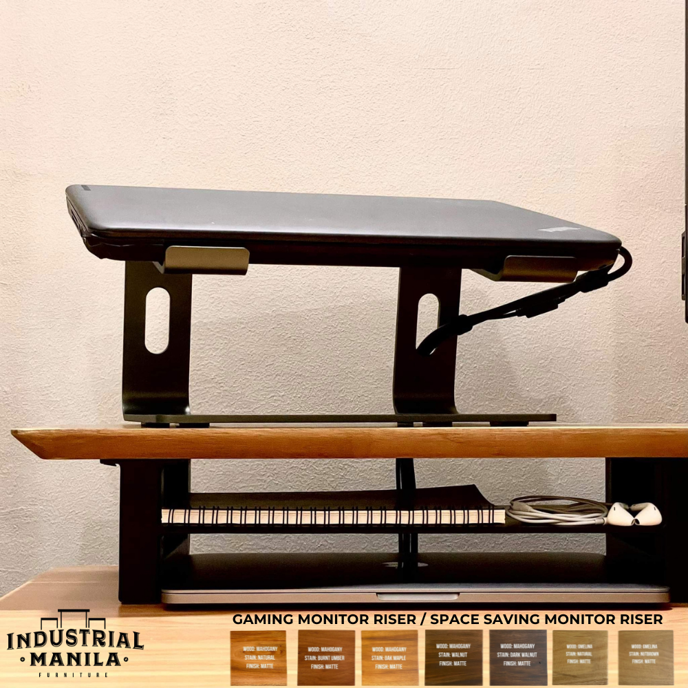 Industrial Manila Gaming Monitor Riser / Desktop Monitor Riser / Monitor Stand Space Saver / Solid Wood Mahogany/ Gmelina